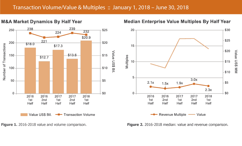 - Total transaction value in 1st Half 2018 rose by 54 percent over 2nd Half 2017, from $13.63 billion to $20.93 billion.