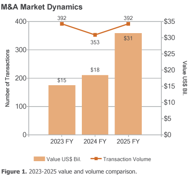 Total transaction value in 2025 rose by 72 percent over 2024, from $18 billion to $31 billion.
