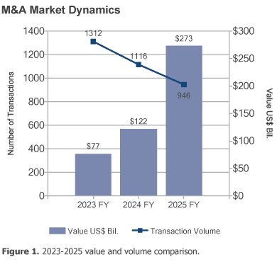 Total transaction value in 2025 more than doubled over 2024, from $122 billion to $273 billion.