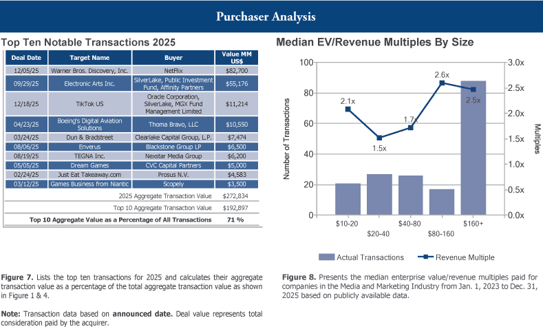 Netflix’s announced acquisition of Warner Bros. Discovery, a premier global media and entertainment company, was the largest Media, Marketing & Online transaction in 2025, with a price of $82.7 billion.