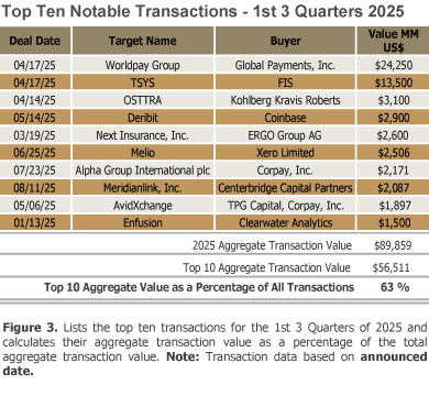 The largest deal in Q3 2025 was Corpay’s announced acquisition of Alpha Group International, a leading provider of B2B cross-border FX solutions to corporations and investment funds in the UK and Europe, for $2.2 billion.