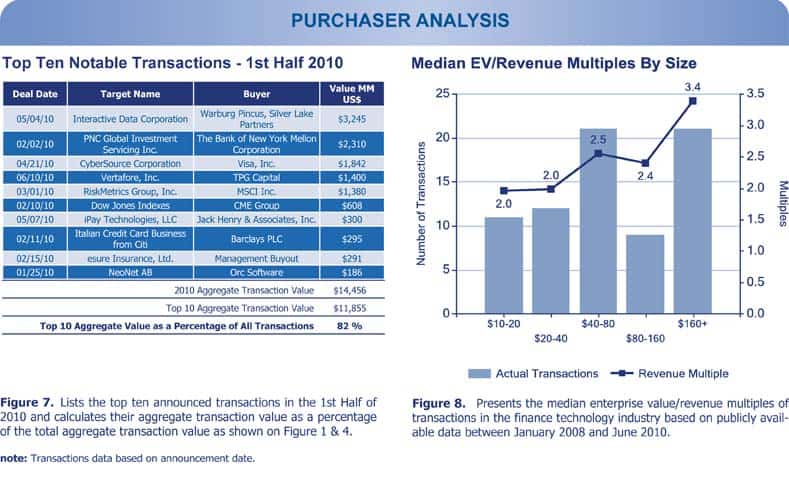 - Revenue multiples in the industry experienced a 210% half-to-half increase from 2.1 in 2nd Half 2009 to 3.8 in 1st Half 2010.